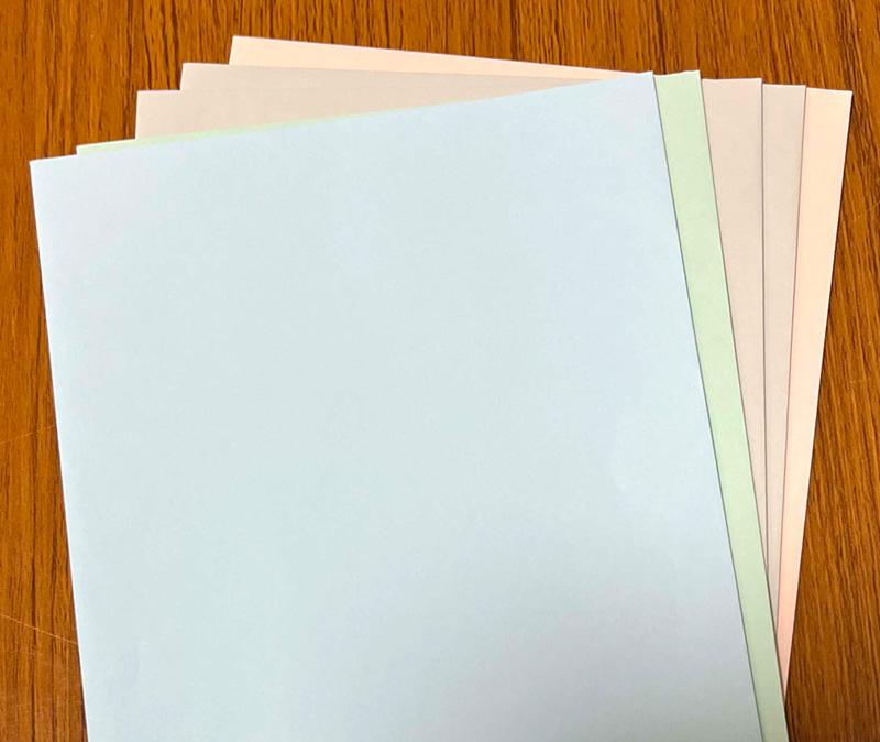 やさしい色あいで様々な用途に合わせて色を変更できます。同一の会社様内で使用目的によって用紙の色を変化させるなど、多様にご使用できます。